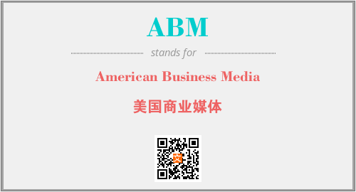 英文缩略词“ABM”经常作为“American Business Media”的英文缩写来使用,中文表示:“美国商业媒体”。本文将详细介绍英文缩写词ABM所代表英文单词,其对应的中文拼音、详细解释以及在英语中的流行度。此外,还有关于缩略词ABM的分类、应用领域及相关应用示例等。
