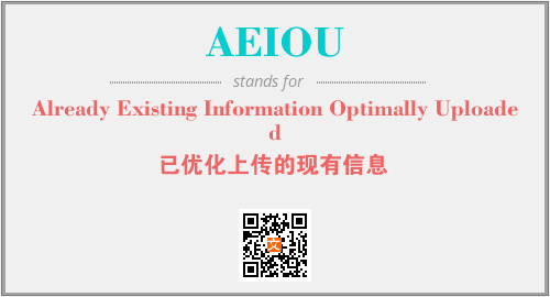 上述内容是“Already Existing Information Optimally Uploaded”作为“AEIOU”的缩写,解释为“已优化上传的现有信息”时的信息,以及英文缩略词AEIOU所代表的英文单词,其对应的中文拼音、详细解释以及在英文中的流行度和相关分类、应用领域及应用示例等。