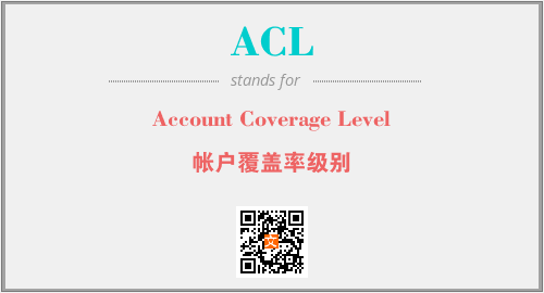 上述内容是“Account Coverage Level”作为“ACL”的缩写,解释为“帐户覆盖率级别”时的信息,以及英文缩略词ACL所代表的英文单词,其对应的中文拼音、详细解释以及在英文中的流行度和相关分类、应用领域及应用示例等。