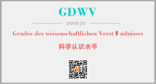 上述内容是“Grades des wissenschaftlichen Verständnisses”作为“GDWV”的缩写,解释为“科学认识水平”时的信息,以及英文缩略词GDWV所代表的英文单词,其对应的中文拼音、详细解释以及在英文中的流行度和相关分类、应用领域及应用示例等。