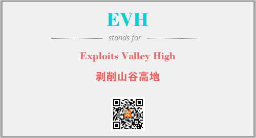 上述内容是“Exploits Valley High”作为“EVH”的缩写,解释为“剥削山谷高地”时的信息,以及英文缩略词EVH所代表的英文单词,其对应的中文拼音、详细解释以及在英文中的流行度和相关分类、应用领域及应用示例等。