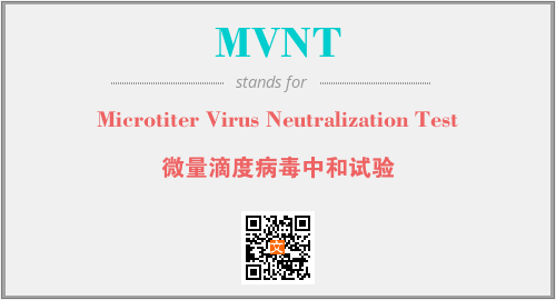 上述内容是“Microtiter Virus Neutralization Test”作为“MVNT”的缩写,解释为“微量滴度病毒中和试验”时的信息,以及英文缩略词MVNT所代表的英文单词,其对应的中文拼音、详细解释以及在英文中的流行度和相关分类、应用领域及应用示例等。
