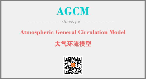 英文缩略词“AGCM”经常作为“Atmospheric General Circulation Model”的英文缩写来使用,中文表示:“大气环流模型”。本文将详细介绍英文缩写词AGCM所代表英文单词,其对应的中文拼音、详细解释以及在英语中的流行度。此外,还有关于缩略词AGCM的分类、应用领域及相关应用示例等。
