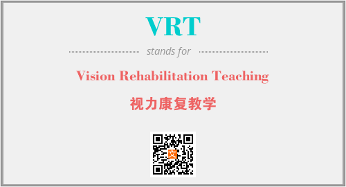 英文缩略词“VRT”经常作为“Vision Rehabilitation Teaching”的英文缩写来使用,中文表示:“视力康复教学”。本文将详细介绍英文缩写词VRT所代表英文单词,其对应的中文拼音、详细解释以及在英语中的流行度。此外,还有关于缩略词VRT的分类、应用领域及相关应用示例等。