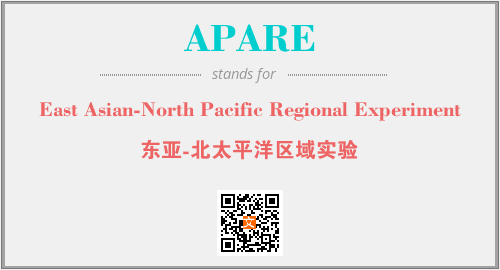 上述内容是“East Asian-North Pacific Regional Experiment”作为“APARE”的缩写,解释为“东亚-北太平洋区域实验”时的信息,以及英文缩略词APARE所代表的英文单词,其对应的中文拼音、详细解释以及在英文中的流行度和相关分类、应用领域及应用示例等。