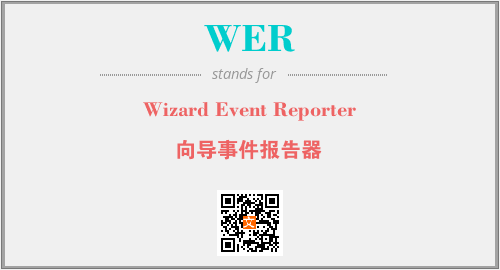 上述内容是“Wizard Event Reporter”作为“WER”的缩写,解释为“向导事件报告器”时的信息,以及英文缩略词WER所代表的英文单词,其对应的中文拼音、详细解释以及在英文中的流行度和相关分类、应用领域及应用示例等。