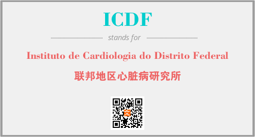 英文缩略词“ICDF”经常作为“Instituto de Cardiologia do Distrito Federal”的英文缩写来使用,中文表示:“联邦地区心脏病研究所”。本文将详细介绍英文缩写词ICDF所代表英文单词,其对应的中文拼音、详细解释以及在英语中的流行度。此外,还有关于缩略词ICDF的分类、应用领域及相关应用示例等。