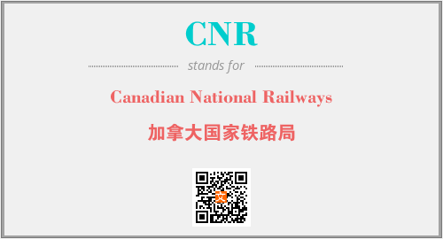 上述内容是“Canadian National Railways”作为“CNR”的缩写,解释为“加拿大国家铁路局”时的信息,以及英文缩略词CNR所代表的英文单词,其对应的中文拼音、详细解释以及在英文中的流行度和相关分类、应用领域及应用示例等。