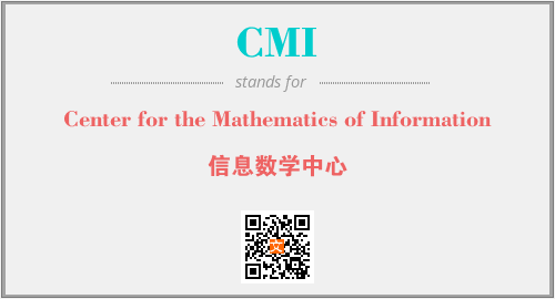 英文缩略词“CMI”经常作为“Center for the Mathematics of Information”的英文缩写来使用,中文表示:“信息数学中心”。本文将详细介绍英文缩写词CMI所代表英文单词,其对应的中文拼音、详细解释以及在英语中的流行度。此外,还有关于缩略词CMI的分类、应用领域及相关应用示例等。