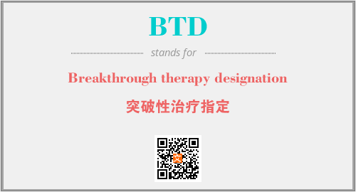 以上为Breakthrough therapy designation英文缩略词BTD的中文解释,以及该英文缩写在英语的流行度、分类和应用领域方面的信息。