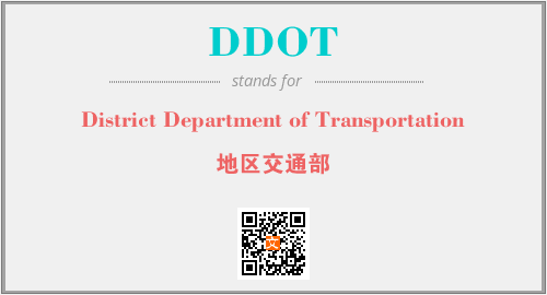 英文缩略词“DDOT”经常作为“District Department of Transportation”的英文缩写来使用,中文表示:“地区交通部”。本文将详细介绍英文缩写词DDOT所代表英文单词,其对应的中文拼音、详细解释以及在英语中的流行度。此外,还有关于缩略词DDOT的分类、应用领域及相关应用示例等。