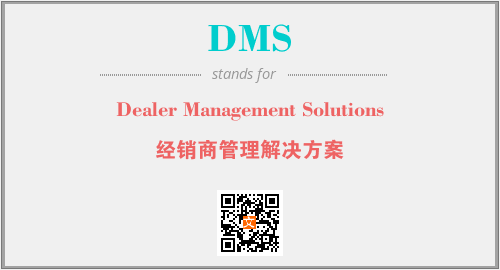 英文缩略词“DMS”经常作为“Dealer Management Solutions”的英文缩写来使用,中文表示:“经销商管理解决方案”。本文将详细介绍英文缩写词DMS所代表英文单词,其对应的中文拼音、详细解释以及在英语中的流行度。此外,还有关于缩略词DMS的分类、应用领域及相关应用示例等。