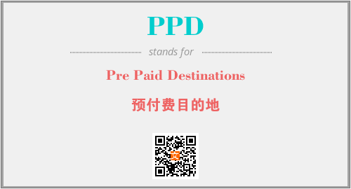 英文缩略词“PPD”经常作为“Pre Paid Destinations”的英文缩写来使用,中文表示:“预付费目的地”。本文将详细介绍英文缩写词PPD所代表英文单词,其对应的中文拼音、详细解释以及在英语中的流行度。此外,还有关于缩略词PPD的分类、应用领域及相关应用示例等。
