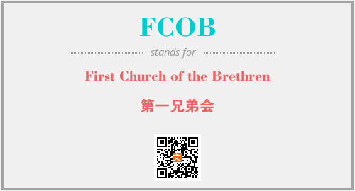 英文缩略词“FCOB”经常作为“First Church of the Brethren”的英文缩写来使用,中文表示:“第一兄弟会”。本文将详细介绍英文缩写词FCOB所代表英文单词,其对应的中文拼音、详细解释以及在英语中的流行度。此外,还有关于缩略词FCOB的分类、应用领域及相关应用示例等。