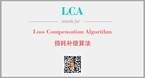 上述内容是“Loss Compensation Algorithm”作为“LCA”的缩写,解释为“损耗补偿算法”时的信息,以及英文缩略词LCA所代表的英文单词,其对应的中文拼音、详细解释以及在英文中的流行度和相关分类、应用领域及应用示例等。