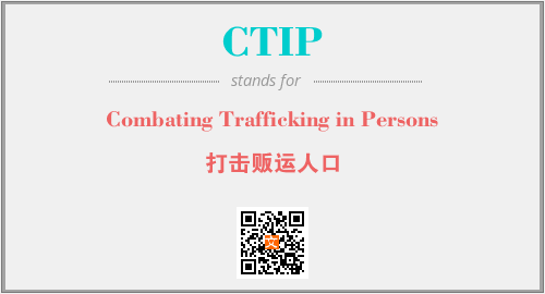 上述内容是“Combating Trafficking in Persons”作为“CTIP”的缩写,解释为“打击贩运人口”时的信息,以及英文缩略词CTIP所代表的英文单词,其对应的中文拼音、详细解释以及在英文中的流行度和相关分类、应用领域及应用示例等。