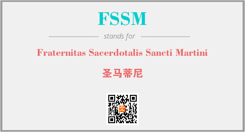 英文缩略词“FSSM”经常作为“Fraternitas Sacerdotalis Sancti Martini”的英文缩写来使用,中文表示:“圣马蒂尼”。本文将详细介绍英文缩写词FSSM所代表英文单词,其对应的中文拼音、详细解释以及在英语中的流行度。此外,还有关于缩略词FSSM的分类、应用领域及相关应用示例等。