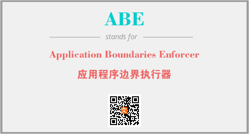 英文缩略词“ABE”经常作为“Application Boundaries Enforcer”的英文缩写来使用,中文表示:“应用程序边界执行器”。本文将详细介绍英文缩写词ABE所代表英文单词,其对应的中文拼音、详细解释以及在英语中的流行度。此外,还有关于缩略词ABE的分类、应用领域及相关应用示例等。