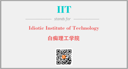 英文缩略词“IIT”经常作为“Idiotic Institute of Technology”的英文缩写来使用,中文表示:“白痴理工学院”。本文将详细介绍英文缩写词IIT所代表英文单词,其对应的中文拼音、详细解释以及在英语中的流行度。此外,还有关于缩略词IIT的分类、应用领域及相关应用示例等。
