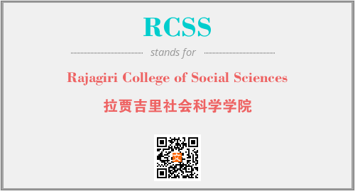 上述内容是“Rajagiri College of Social Sciences”作为“RCSS”的缩写,解释为“拉贾吉里社会科学学院”时的信息,以及英文缩略词RCSS所代表的英文单词,其对应的中文拼音、详细解释以及在英文中的流行度和相关分类、应用领域及应用示例等。