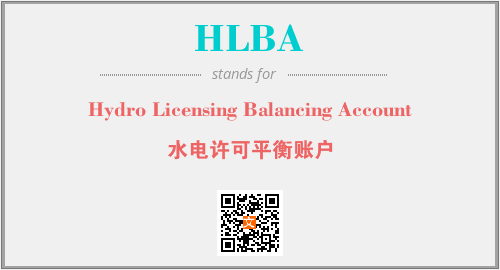 上述内容是“Hydro Licensing Balancing Account”作为“HLBA”的缩写,解释为“水电许可平衡账户”时的信息,以及英文缩略词HLBA所代表的英文单词,其对应的中文拼音、详细解释以及在英文中的流行度和相关分类、应用领域及应用示例等。