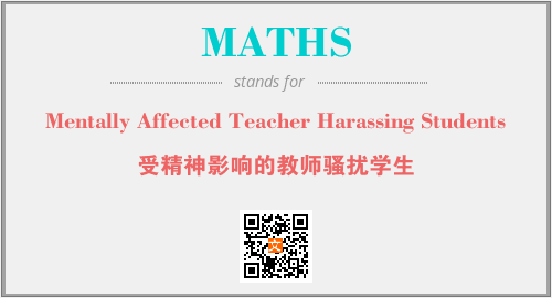 以上为Mentally Affected Teacher Harassing Students英文缩略词MATHS的中文解释,以及该英文缩写在英语的流行度、分类和应用领域方面的信息。