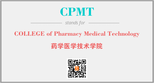 上述内容是“COLLEGE of Pharmacy Medical Technology”作为“CPMT”的缩写,解释为“药学医学技术学院”时的信息,以及英文缩略词CPMT所代表的英文单词,其对应的中文拼音、详细解释以及在英文中的流行度和相关分类、应用领域及应用示例等。
