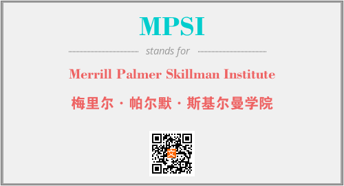 以上为Merrill Palmer Skillman Institute英文缩略词MPSI的中文解释,以及该英文缩写在英语的流行度、分类和应用领域方面的信息。