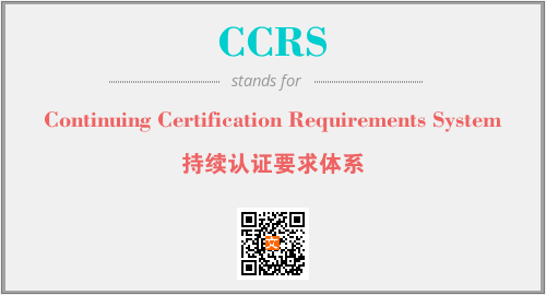 英文缩略词“CCRS”经常作为“Continuing Certification Requirements System”的英文缩写来使用,中文表示:“持续认证要求体系”。本文将详细介绍英文缩写词CCRS所代表英文单词,其对应的中文拼音、详细解释以及在英语中的流行度。此外,还有关于缩略词CCRS的分类、应用领域及相关应用示例等。