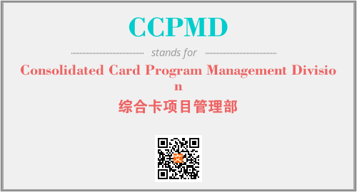 上述内容是“Consolidated Card Program Management Division”作为“CCPMD”的缩写,解释为“综合卡项目管理部”时的信息,以及英文缩略词CCPMD所代表的英文单词,其对应的中文拼音、详细解释以及在英文中的流行度和相关分类、应用领域及应用示例等。