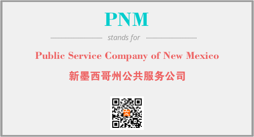 英文缩略词“PNM”经常作为“Public Service Company of New Mexico”的英文缩写来使用,中文表示:“新墨西哥州公共服务公司”。本文将详细介绍英文缩写词PNM所代表英文单词,其对应的中文拼音、详细解释以及在英语中的流行度。此外,还有关于缩略词PNM的分类、应用领域及相关应用示例等。