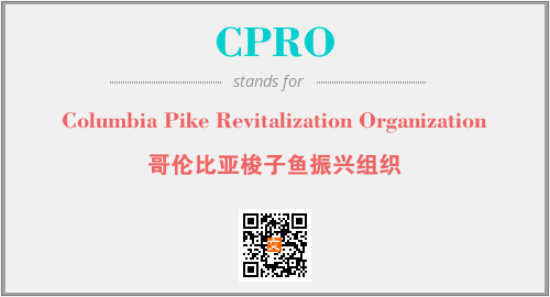 上述内容是“Columbia Pike Revitalization Organization”作为“CPRO”的缩写,解释为“哥伦比亚梭子鱼振兴组织”时的信息,以及英文缩略词CPRO所代表的英文单词,其对应的中文拼音、详细解释以及在英文中的流行度和相关分类、应用领域及应用示例等。