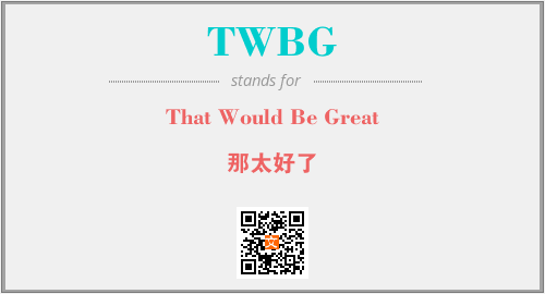 以上为That Would Be Great英文缩略词TWBG的中文解释,以及该英文缩写在英语的流行度、分类和应用领域方面的信息。