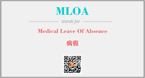 以上为Medical Leave Of Absence英文缩略词MLOA的中文解释,以及该英文缩写在英语的流行度、分类和应用领域方面的信息。