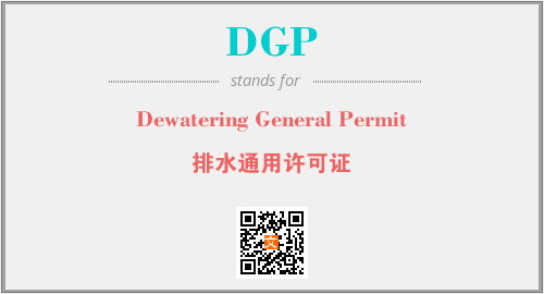 英文缩略词“DGP”经常作为“Dewatering General Permit”的英文缩写来使用,中文表示:“排水通用许可证”。本文将详细介绍英文缩写词DGP所代表英文单词,其对应的中文拼音、详细解释以及在英语中的流行度。此外,还有关于缩略词DGP的分类、应用领域及相关应用示例等。
