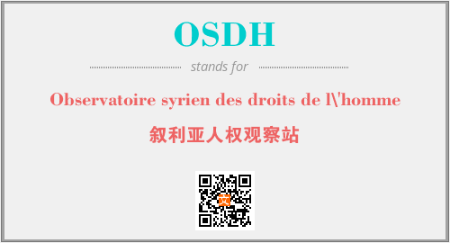 上述内容是“Observatoire syrien des droits de l\'homme”作为“OSDH”的缩写,解释为“叙利亚人权观察站”时的信息,以及英文缩略词OSDH所代表的英文单词,其对应的中文拼音、详细解释以及在英文中的流行度和相关分类、应用领域及应用示例等。