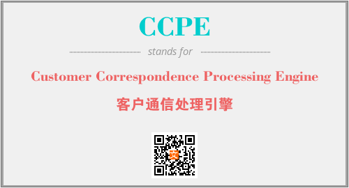 英文缩略词“CCPE”经常作为“Customer Correspondence Processing Engine”的英文缩写来使用,中文表示:“客户通信处理引擎”。本文将详细介绍英文缩写词CCPE所代表英文单词,其对应的中文拼音、详细解释以及在英语中的流行度。此外,还有关于缩略词CCPE的分类、应用领域及相关应用示例等。