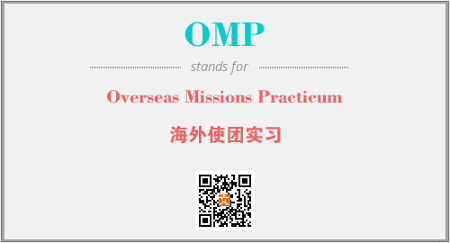 以上为Overseas Missions Practicum英文缩略词OMP的中文解释,以及该英文缩写在英语的流行度、分类和应用领域方面的信息。