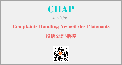 以上为Complaints Handling Accueil des Plaignants英文缩略词CHAP的中文解释,以及该英文缩写在英语的流行度、分类和应用领域方面的信息。