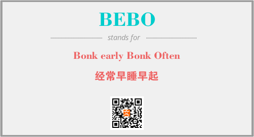 上述内容是“Bonk early Bonk Often”作为“BEBO”的缩写,解释为“经常早睡早起”时的信息,以及英文缩略词BEBO所代表的英文单词,其对应的中文拼音、详细解释以及在英文中的流行度和相关分类、应用领域及应用示例等。