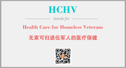 上述内容是“Health Care for Homeless Veterans”作为“HCHV”的缩写,解释为“无家可归退伍军人的医疗保健”时的信息,以及英文缩略词HCHV所代表的英文单词,其对应的中文拼音、详细解释以及在英文中的流行度和相关分类、应用领域及应用示例等。