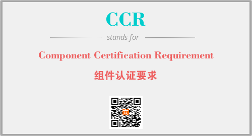 英文缩略词“CCR”经常作为“Component Certification Requirement”的英文缩写来使用,中文表示:“组件认证要求”。本文将详细介绍英文缩写词CCR所代表英文单词,其对应的中文拼音、详细解释以及在英语中的流行度。此外,还有关于缩略词CCR的分类、应用领域及相关应用示例等。