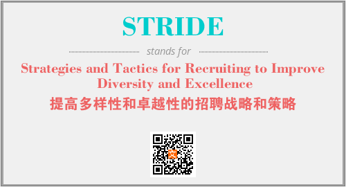 上述内容是“Strategies and Tactics for Recruiting to Improve Diversity and Excellence”作为“STRIDE”的缩写,解释为“提高多样性和卓越性的招聘战略和策略”时的信息,以及英文缩略词STRIDE所代表的英文单词,其对应的中文拼音、详细解释以及在英文中的流行度和相关分类、应用领域及应用示例等。