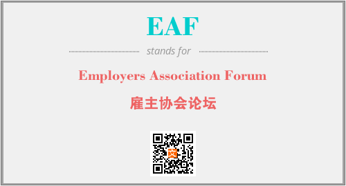 上述内容是“Employers Association Forum”作为“EAF”的缩写,解释为“雇主协会论坛”时的信息,以及英文缩略词EAF所代表的英文单词,其对应的中文拼音、详细解释以及在英文中的流行度和相关分类、应用领域及应用示例等。