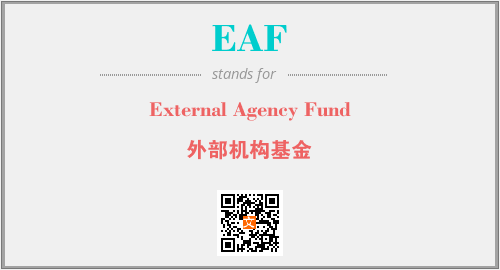英文缩略词“EAF”经常作为“External Agency Fund”的英文缩写来使用,中文表示:“外部机构基金”。本文将详细介绍英文缩写词EAF所代表英文单词,其对应的中文拼音、详细解释以及在英语中的流行度。此外,还有关于缩略词EAF的分类、应用领域及相关应用示例等。
