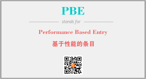 上述内容是“Performance Based Entry”作为“PBE”的缩写,解释为“基于性能的条目”时的信息,以及英文缩略词PBE所代表的英文单词,其对应的中文拼音、详细解释以及在英文中的流行度和相关分类、应用领域及应用示例等。