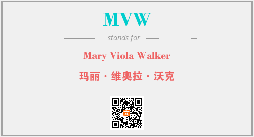 上述内容是“Mary Viola Walker”作为“MVW”的缩写,解释为“玛丽·维奥拉·沃克”时的信息,以及英文缩略词MVW所代表的英文单词,其对应的中文拼音、详细解释以及在英文中的流行度和相关分类、应用领域及应用示例等。