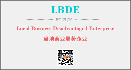 英文缩略词“LBDE”经常作为“Local Business Disadvantaged Enterprise”的英文缩写来使用,中文表示:“当地商业弱势企业”。本文将详细介绍英文缩写词LBDE所代表英文单词,其对应的中文拼音、详细解释以及在英语中的流行度。此外,还有关于缩略词LBDE的分类、应用领域及相关应用示例等。