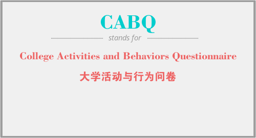 上述内容是“College Activities and Behaviors Questionnaire”作为“CABQ”的缩写,解释为“大学活动与行为问卷”时的信息,以及英文缩略词CABQ所代表的英文单词,其对应的中文拼音、详细解释以及在英文中的流行度和相关分类、应用领域及应用示例等。