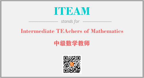 英文缩略词“ITEAM”经常作为“Intermediate TEAchers of Mathematics”的英文缩写来使用,中文表示:“中级数学教师”。本文将详细介绍英文缩写词ITEAM所代表英文单词,其对应的中文拼音、详细解释以及在英语中的流行度。此外,还有关于缩略词ITEAM的分类、应用领域及相关应用示例等。